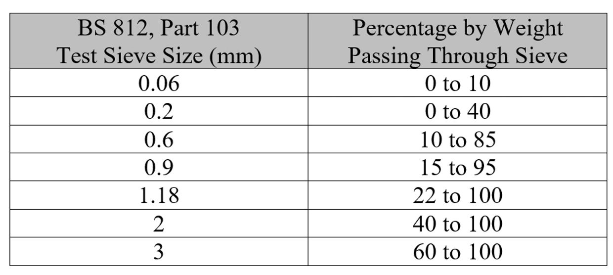 BS 812, Part 103 outlines specifications for test sieve sizes used in materials testing.